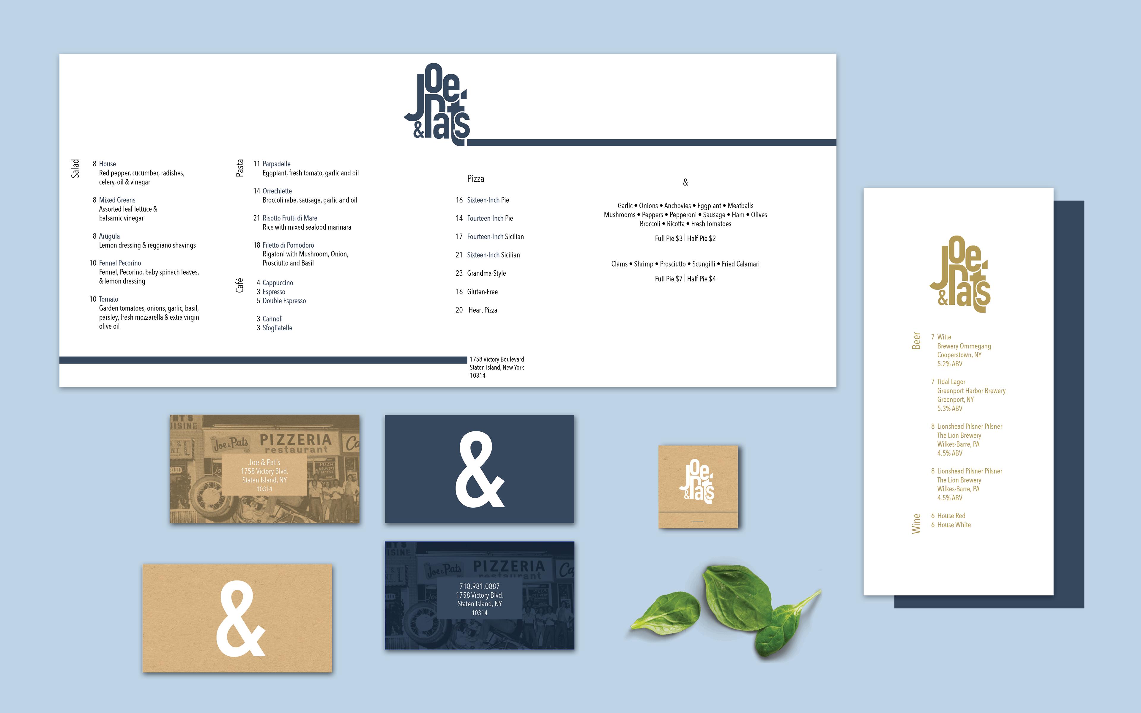 Rebrand and product design for Joe & Pat's Pizza for typography course.